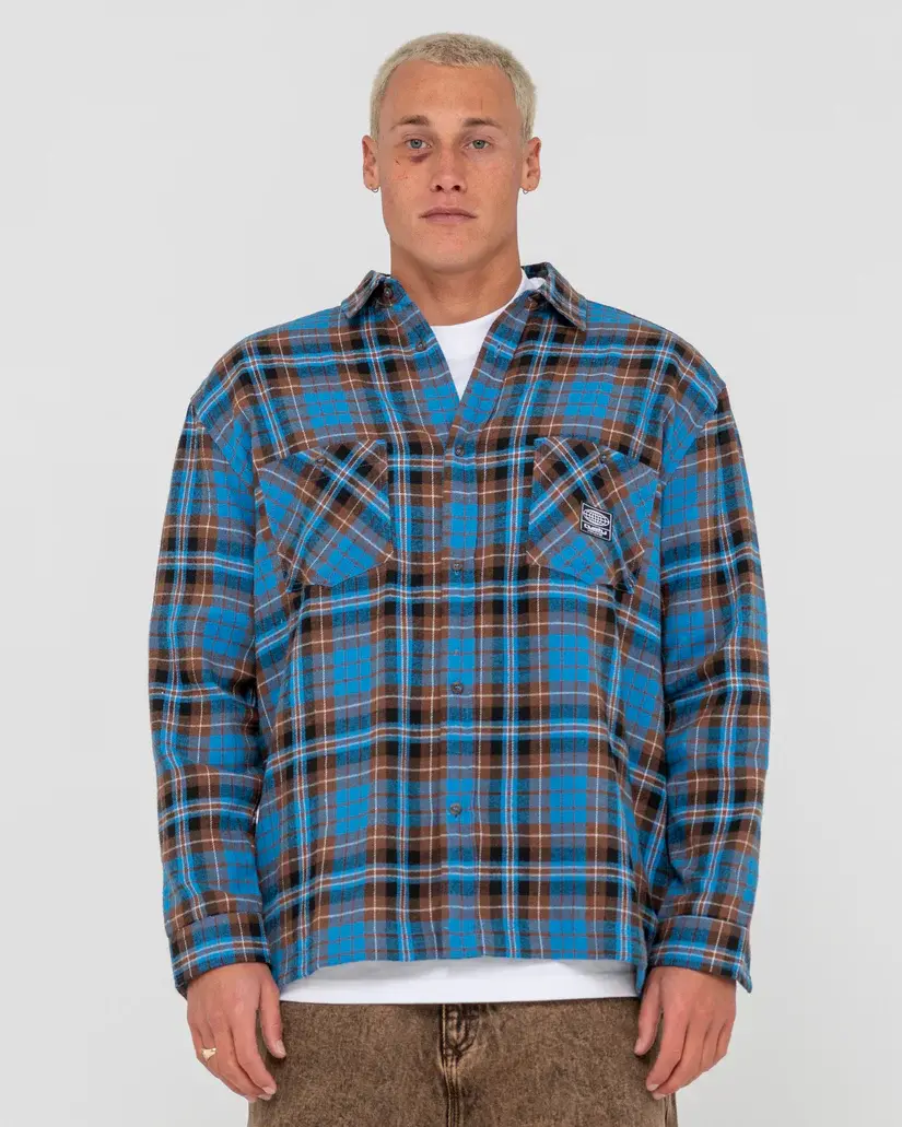 RHYTHM LIVIN' Mens Boys Albert Check Long Sleeve Shirt - Flannel RRP $109.99